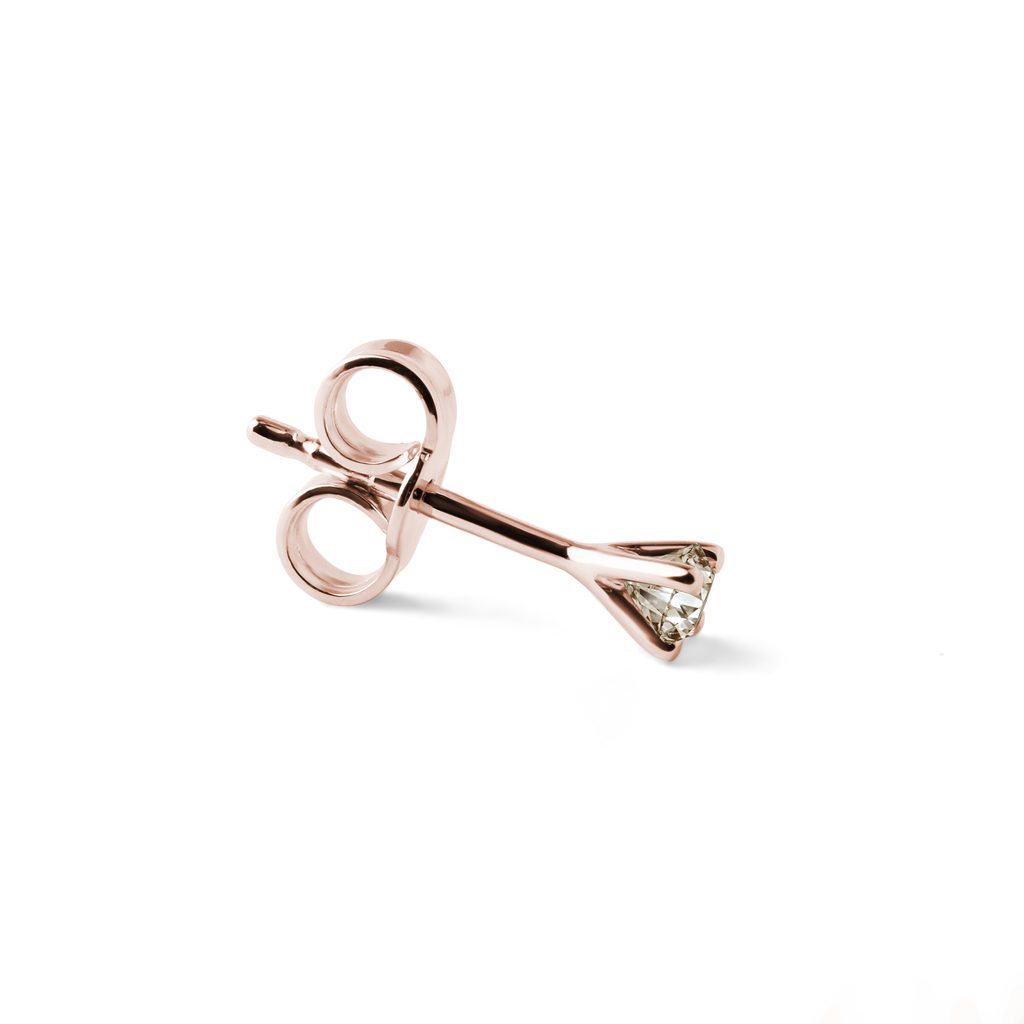 Zarter Ohrring aus 14 kt Roségold mit einem 2 mm großen, champagnerfarbenen Diamanten im Brillantschliff. Ein feines und dezentes Schmuckstück, das andere Ohrringe wunderbar ergänzt und den Gesamtlook perfekt abrundet. Einzeln erhältlich.