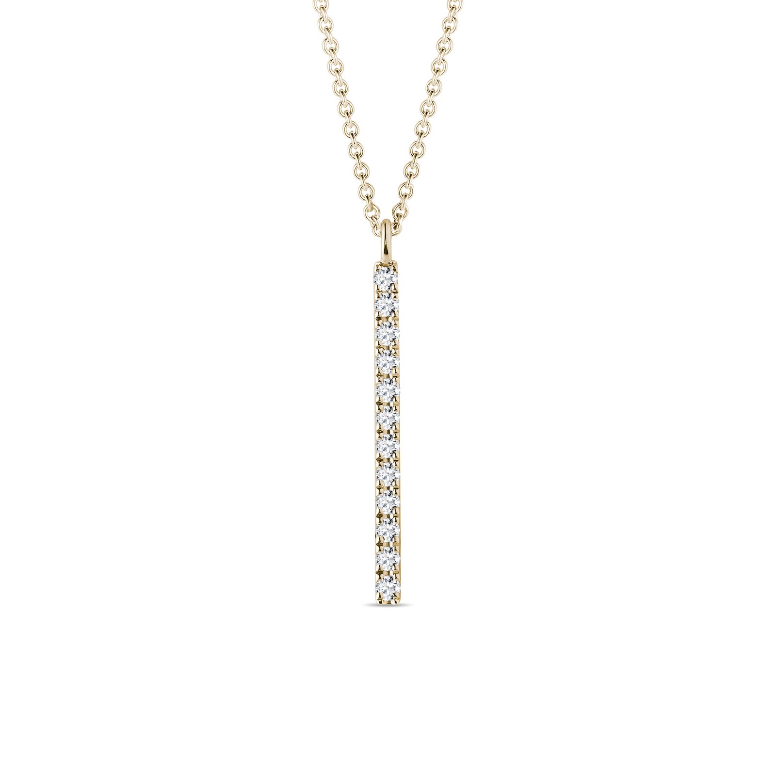 Feine Kette mit einer Länge von 45 cm aus 14 kt Gelbgold, die mit einem lockeren Anhänger in Form von einem 21 mm Stab, der mit Brillanten dekoriert sind. Dieses moderne und zeitlose Juwel wird als Einzelstück wunderschön aussehen, aber es ergänzt auch andere Ketten. Ein toller Geschenktipp, der Frauen unterschiedlichen Alters erfreut.
