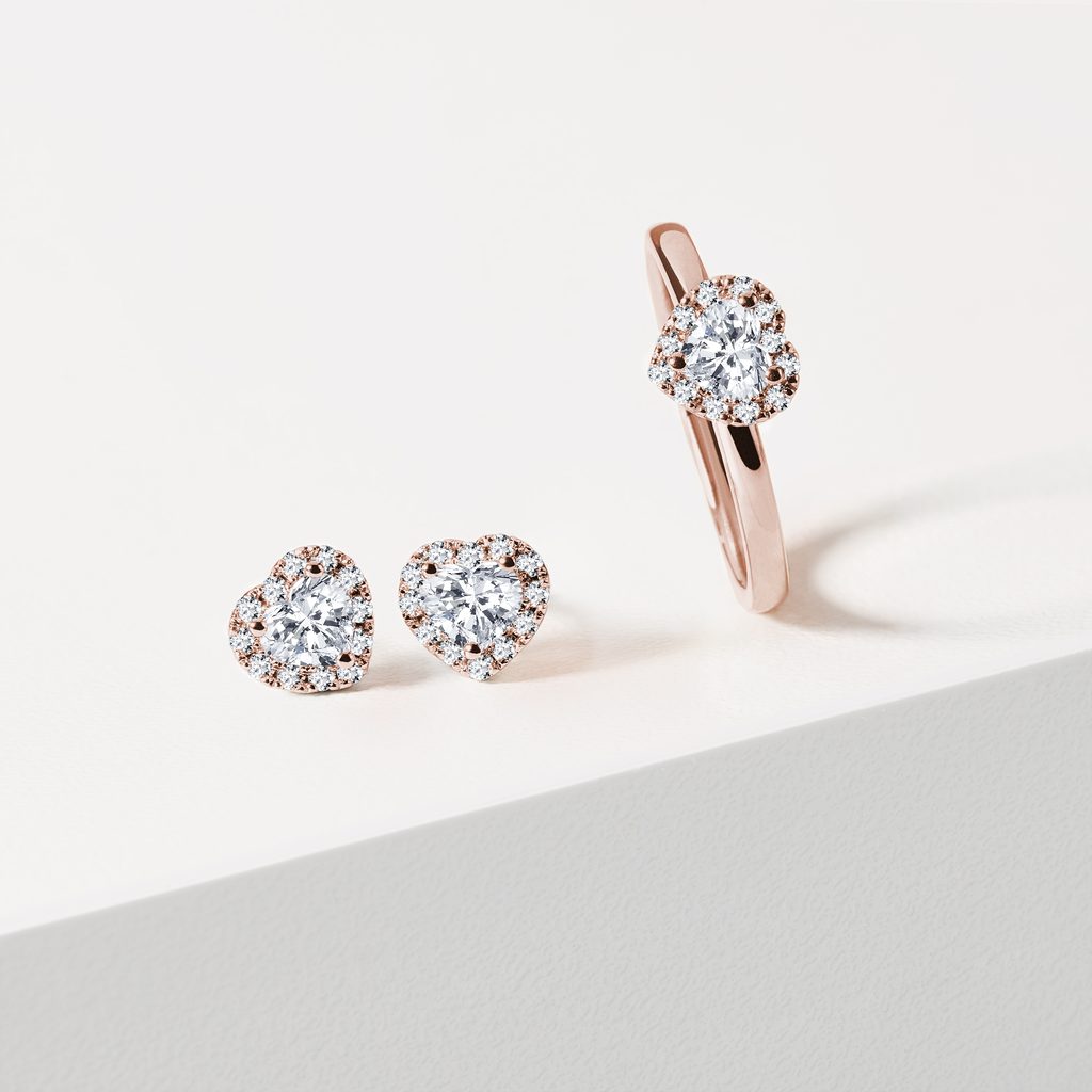 Diese Ohrstecker aus Roségold sind mit einem natürlichen, herzförmigen Diamanten besetzt. Kleine, klare Diamanten umgeben ihn in einer Halo-Fassung. Das Schmuckstück wirkt sehr luxuriös und funkelt wunderschön. Eine ideale Wahl für Frauen, die zarten, aber dennoch unverwechselbaren Schmuck mit einem romantischen Touch lieben.