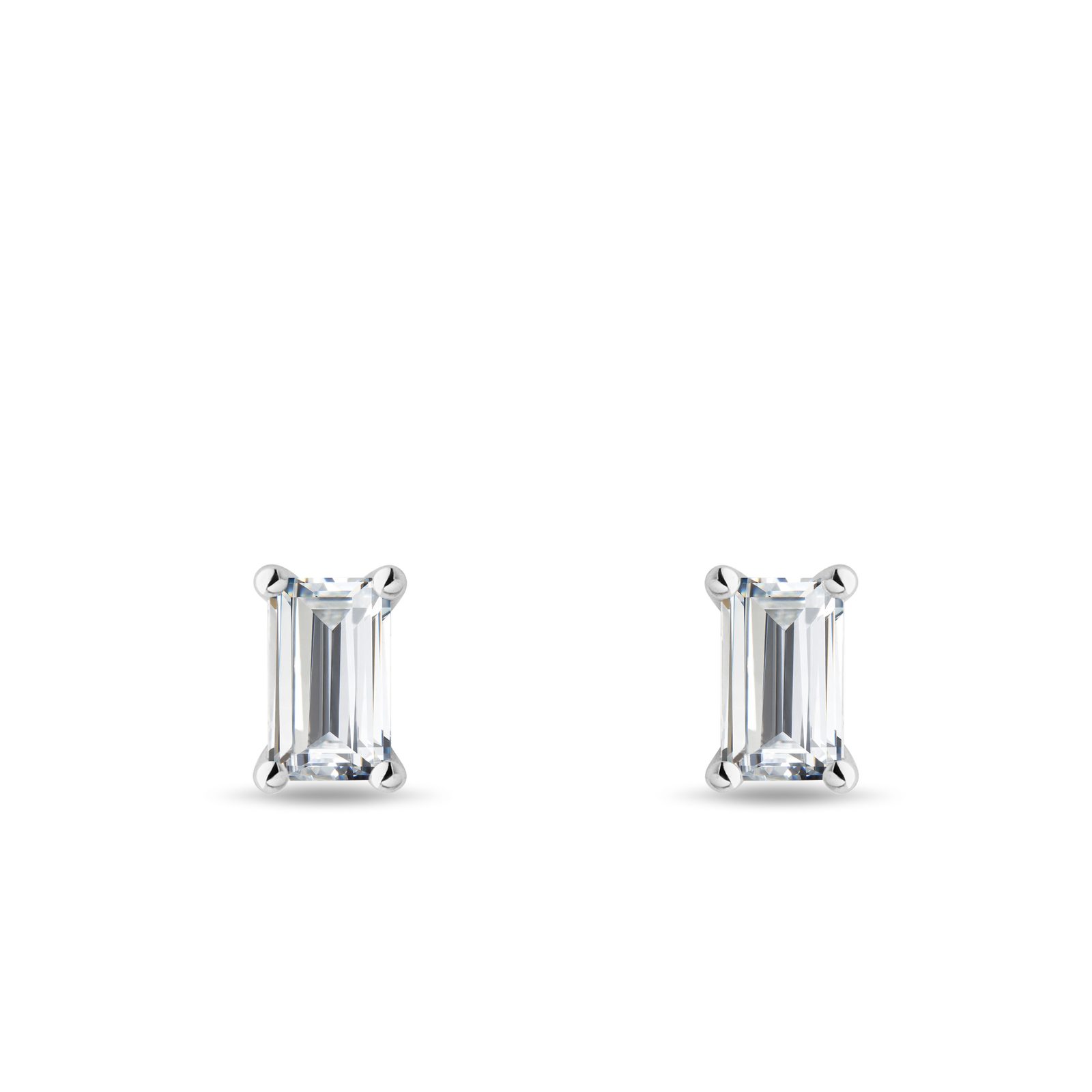 Elegante Ohrringe aus 14 kt Weißgold mit Diamanten im rechteckigen Smaragdschliff, die im Labor hergestellt wurden. Die klaren Linien und die Klarheit der Steine verleihen dem Schmuck einen modernen, zeitlosen Look. Das minimalistische Design sorgt dafür, dass sich die Ohrringe leicht mit anderen Schmuckstücken kombinieren lassen und eine unaufdringliche, aber beeindruckende Ergänzung für jedes Schmuckkästchen darstellen.
