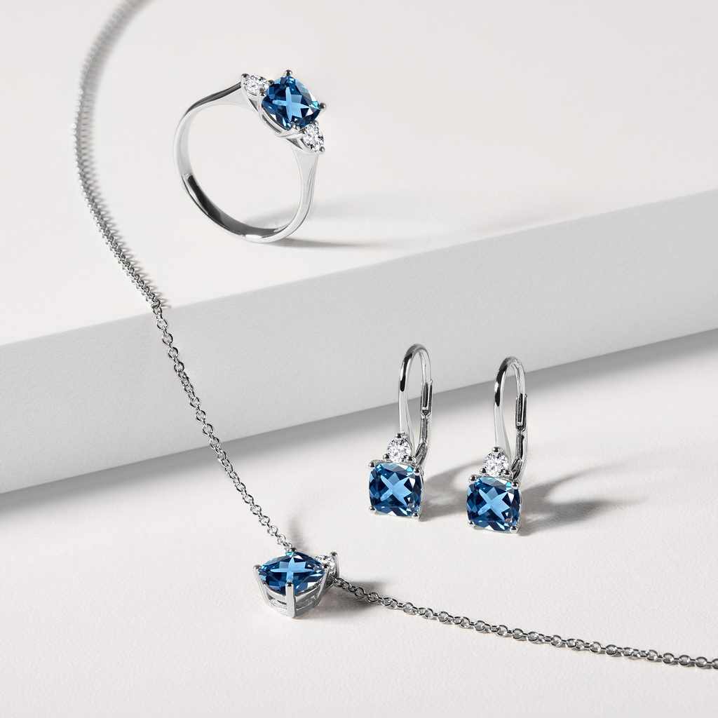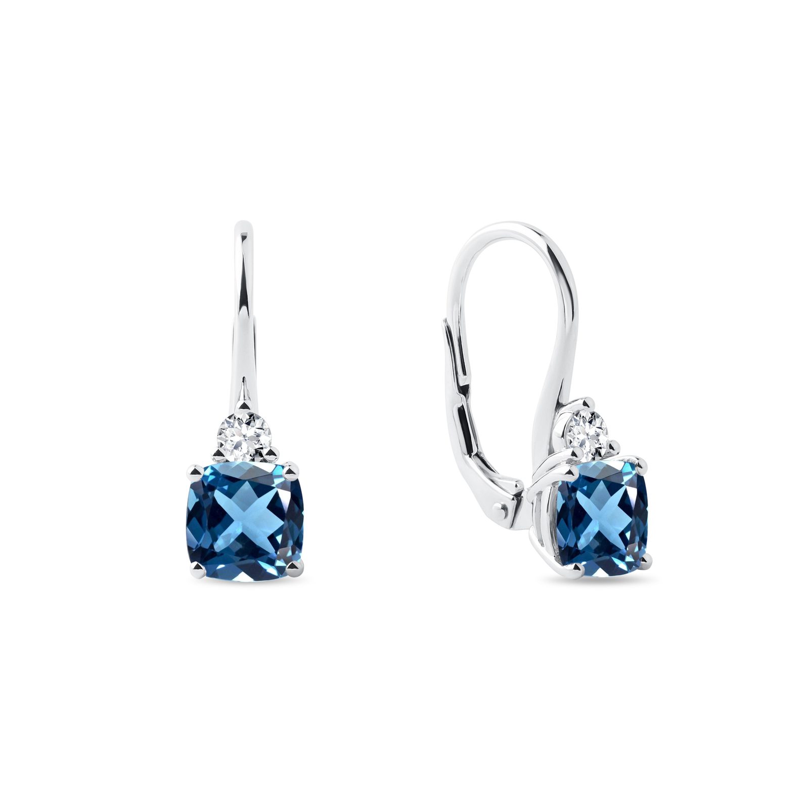 Edle Ohrringe aus 14kt Weißgold mit funkelndem London Topas im Kissenschliff. Die eindrucksvolle Farbe des zentralen Steins wird von klaren Diamanten kontrastiert und so perfekt in Szene gesetzt. Die Ohrringe sind mit einem praktischen Steckverschluss gefertigt und eignen sich perfekt zum täglichen Tragen. Entdecken Sie auch unsere weiteren Schmuckstücke dieses Designs.