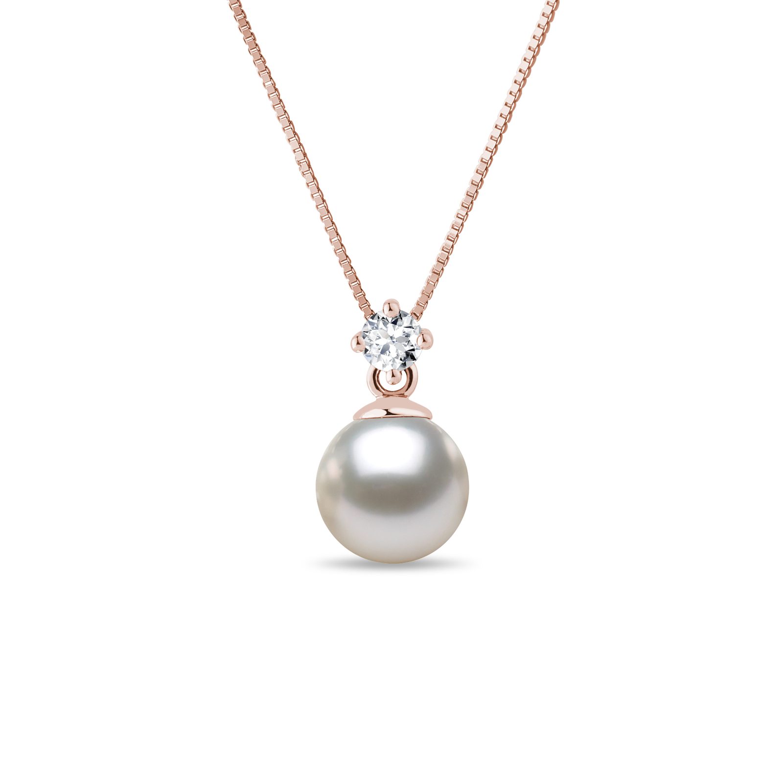 Zarte Halskette aus 14kt Roségold mit einer edlen Akoyaperle und einem funkelnden Diamanten. Das perfekte Accessoire für jeden Anlass und das ideale Geschenk für Frauen mit einer Vorliebe für zeitlose Eleganz und klassische Designs.