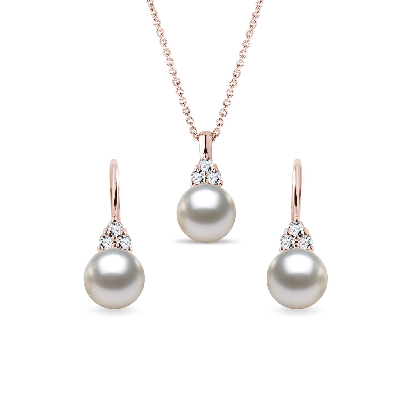 Schmuckset mit Akoyaperlen und Diamanten in Roségold