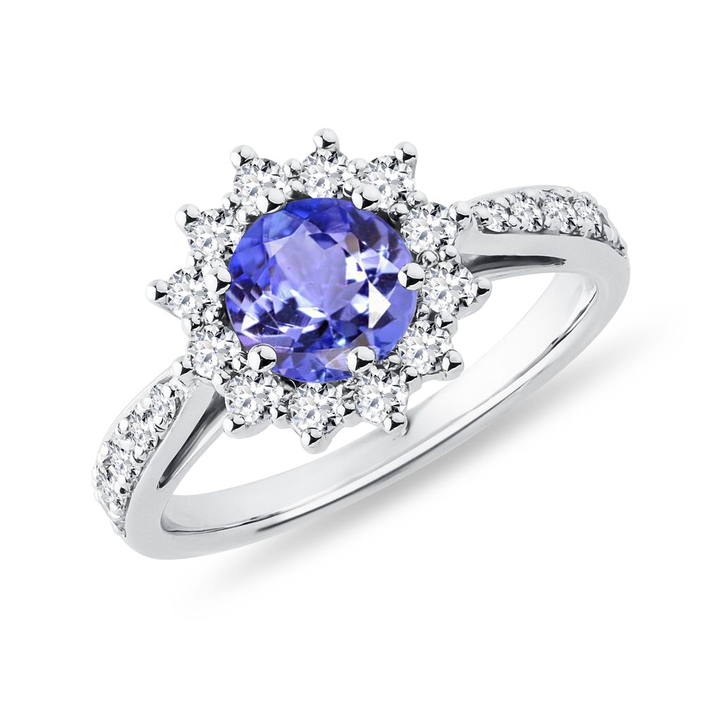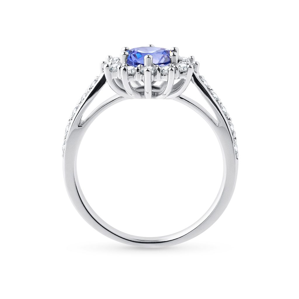 Weißgoldring mit rundem Tansanit und Diamanten