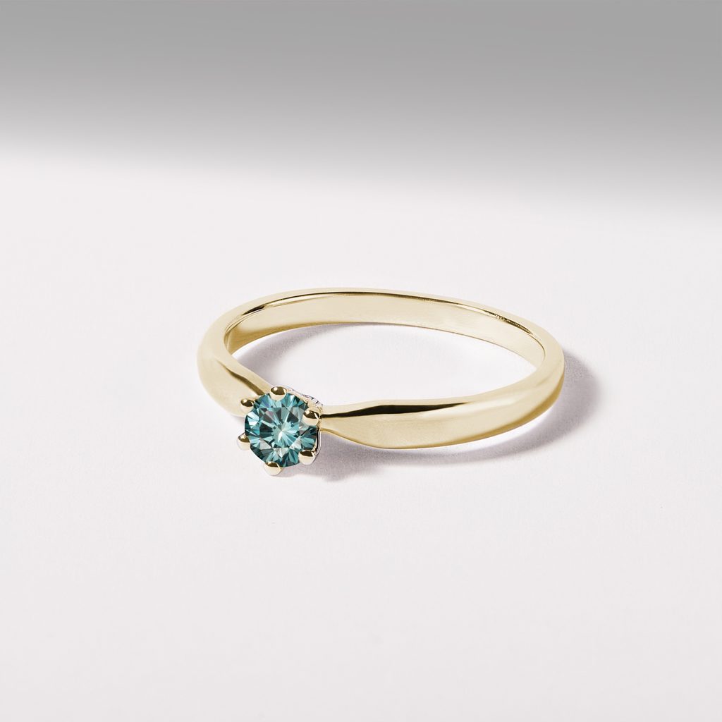 Verlobungsring mit blauem Diamanten in Gelbgold